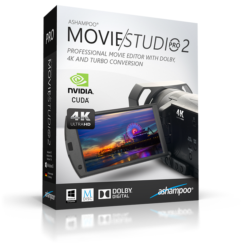 Ashampoo Movie Studio Pro 2, the universal application to edit, convert and create videos has been overhauled and now boast a range of new features. Based on the latest software technology, current standards such as 4k and Dolby are now fully supported. Different simple and expert modes, GPU-based encoding and a new video cutting area with multi-track support guarantees excellent results fast. With support for GPU-based rendering on NVidia cards, movie conversion has been accelerated by up to 400%.